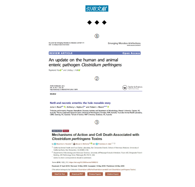 ■ 據(jù)現(xiàn)有養(yǎng)殖行業(yè)對(duì)產(chǎn)氣莢膜梭菌的研究報(bào)道中,與雞腸道疾病有關(guān)的主要毒素是α、NetB。