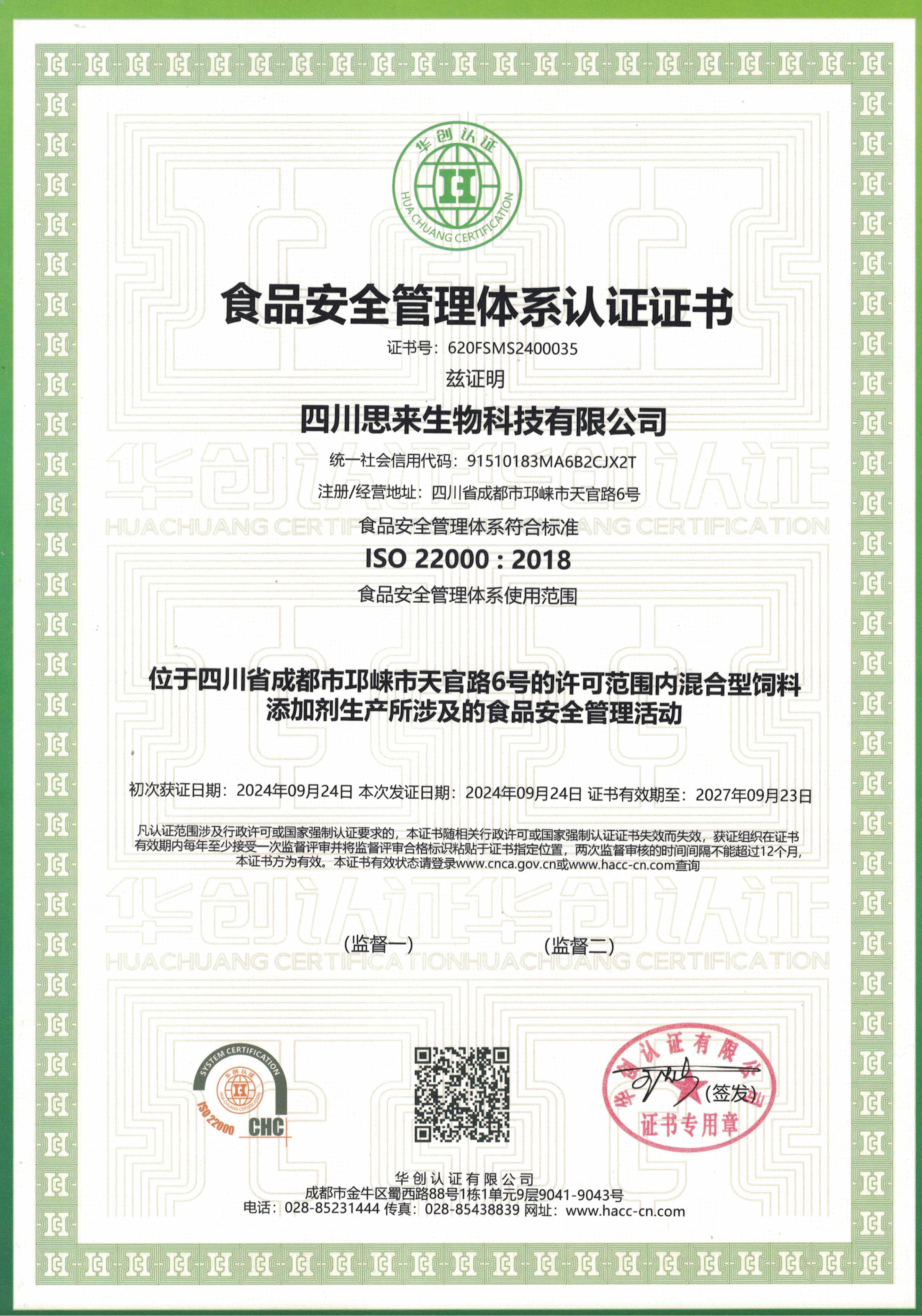 并于2024年9月24日為我司頒發(fā)了“食品安全管理體系認(rèn)證證書(shū)”。